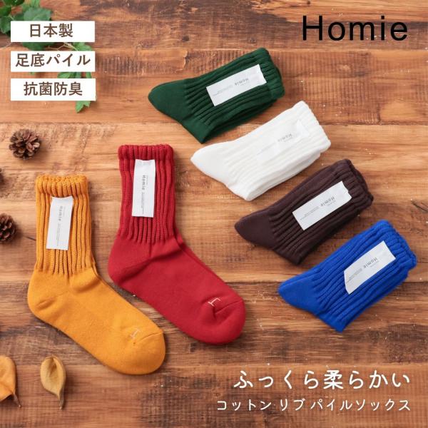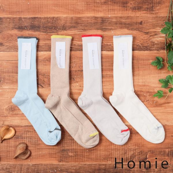靴下 ソックス Homie ホミー コットン レーヨン シルクソックス レディース オールシーズン 綿 抗菌防臭 ストレスフリー 快適 日本製 クルー丈 22-24cm ギフト