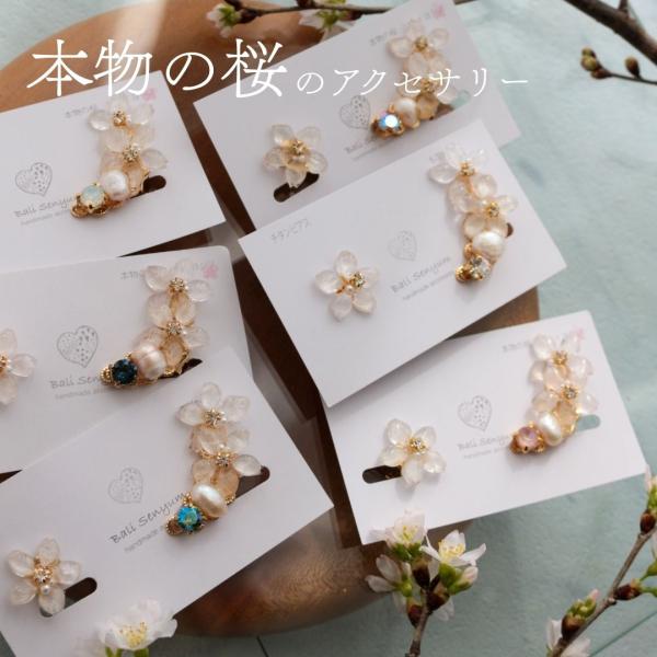バリセニュン Bali Senyum 桜 花びら 本物 ピアス イヤリング イヤーカフ セット レディース かわいい お花 ソメイヨシノ チタン おしゃれ 大ぶり 大きめ ギフト