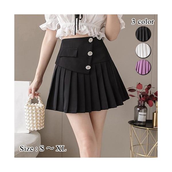 スカート セクシー レディース ガーリー キュート ビジュー プリーツ ミニスカ ホワイト パープル ブラック S M L XL グラシア