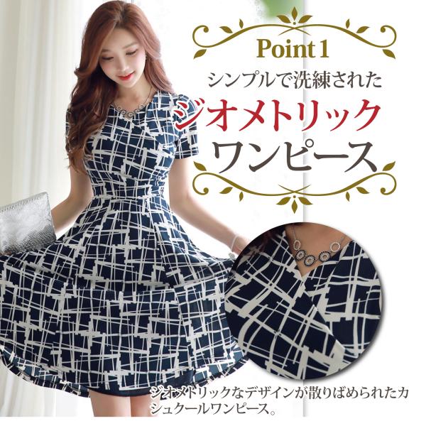 ナイトドレス キャバドレス ミディアムドレス カシュクール ワンピース 半袖 ジオメトリック Vカット 切り替え レディース グラシア