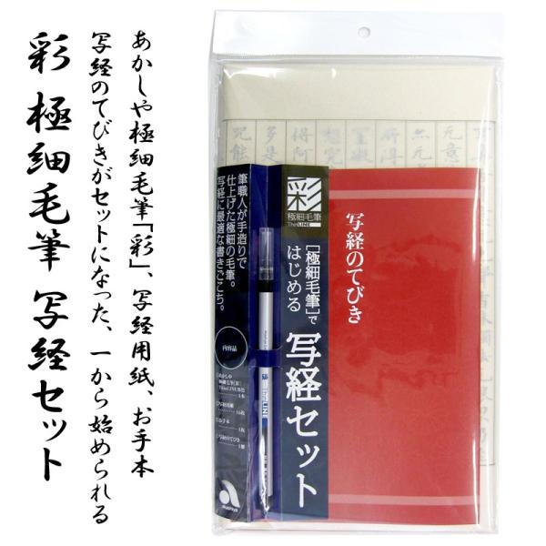 彩極細毛筆写経セット(趣味 初心者でも始められる写経セット シニアにおすすめ あかしや極細毛筆 写経用紙16枚 お手本 写経のてびき)