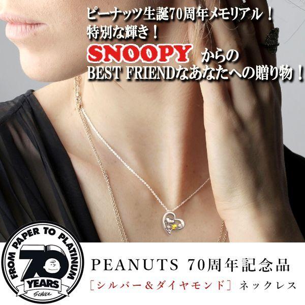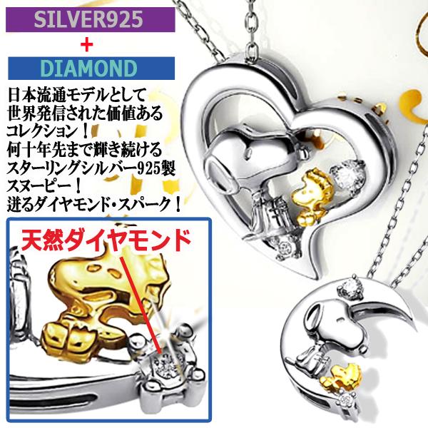 ピーナッツ生誕70周年記念スヌーピーダイヤネックレス (三日月 幸運 ウッドストック オープンハート 贈り物 SNOOPY ラッピングバッグ シルバー925)