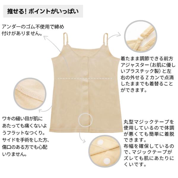 カップ付き キャミソール 下着 医療用 取り外し ゴムなし 前開き