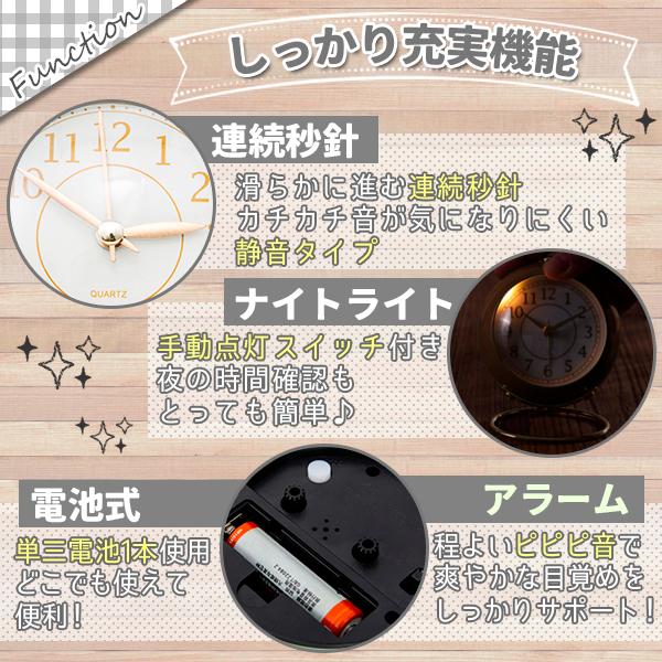 目覚まし時計 置き時計 アンティーク アナログ 電池式 丸型 ホワイト 静音 ライト付き 多機能 アラーム うるさくない 連続秒針 単三電池 インテリア かわいい