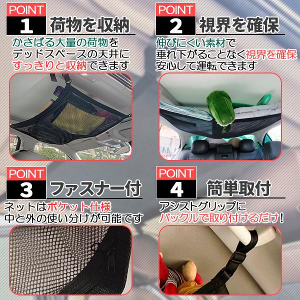 車 車内 ネット ヘッドスペースネット 収納 天井収納 ルーフネット マルチネット 荷物 車中泊 便利グッズ ミニバン カー用品