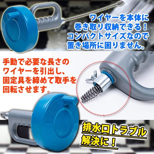 回転式 パイプクリーナー ワイヤーブラシ 手動式 ワイヤー 5m タイプ トイレ 洗面所 排水口 詰まりのトラブルに 水回り トラブル 排水管 詰まり 解消