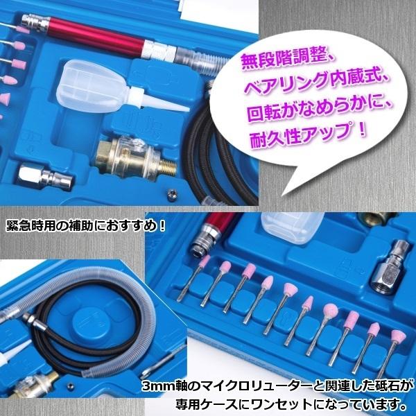 エアー式 ルーター エアーマイクロルーター セット ケース付き ルーター 無段階調整 ベアリング内蔵式 マイクロ ミニ キット ペンシル グラインダー エアツール