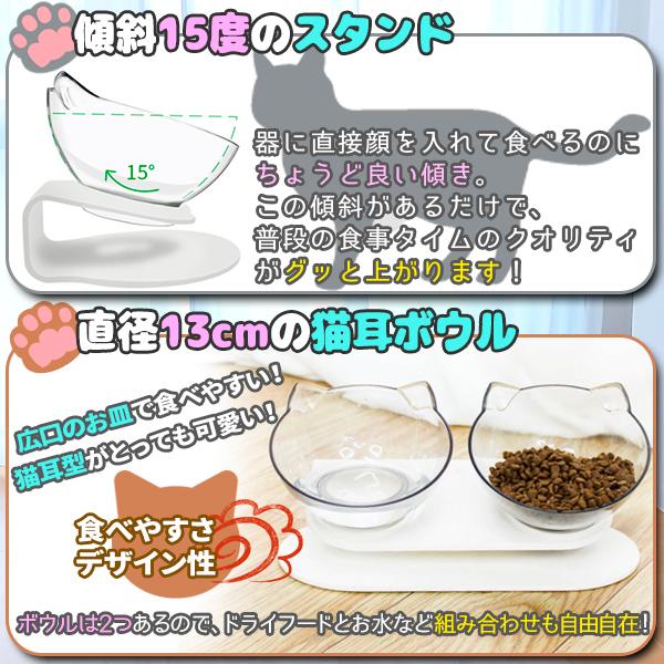 フードボウル 2個セット 猫 餌皿 エサ皿 食器 犬 小型犬 フードボールスタンド 傾斜 餌 エサ 餌入れ エサ入れ 皿 お皿 ペット 猫用 犬用 おしゃれ 猫耳