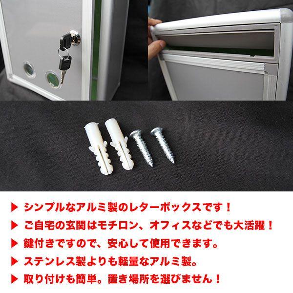 レターボックス 鍵付き アルミ枠 郵便受け 投書箱 ポスト ガーデン メールボックス 玄関 郵便受け 取付 簡易 シンプル