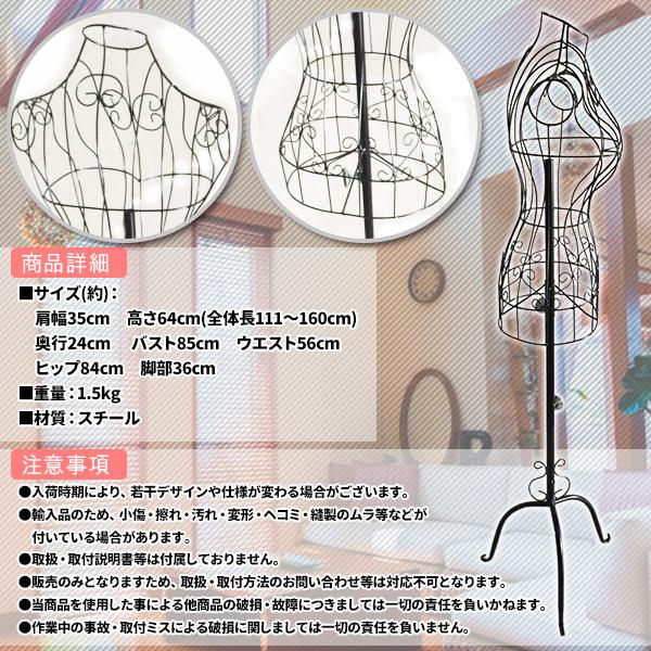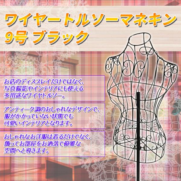 トルソー マネキン レディース 9号 ワイヤー 黒 女性 上半身 ハーフ ハンガー スタンド ディスプレイ インテリア アンティーク 女性用 首下 半身 自立 ブラック
