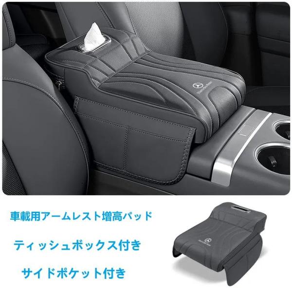 メルセデス ベンツ BENZ ブラック アームレストカバー 肘掛けクッション ティッシュボックスとサイドポケット付き 車アームレストサポート