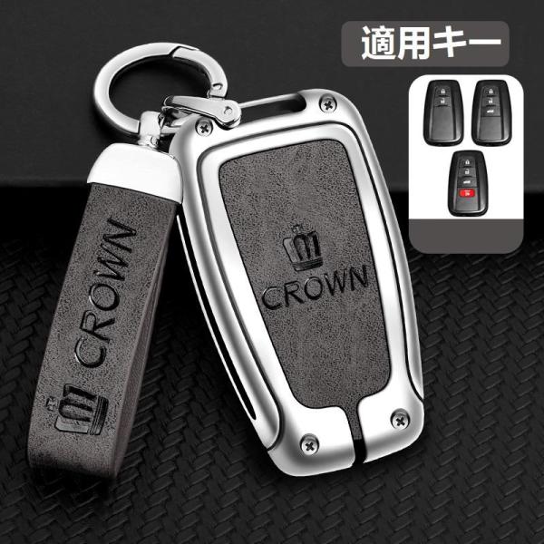 クラウン CROWN シルバー/グレー キーケース キーホルダー付き 高級 スマートキーカバーTPU 車 傷のつきにくい 防水 防塵 A番