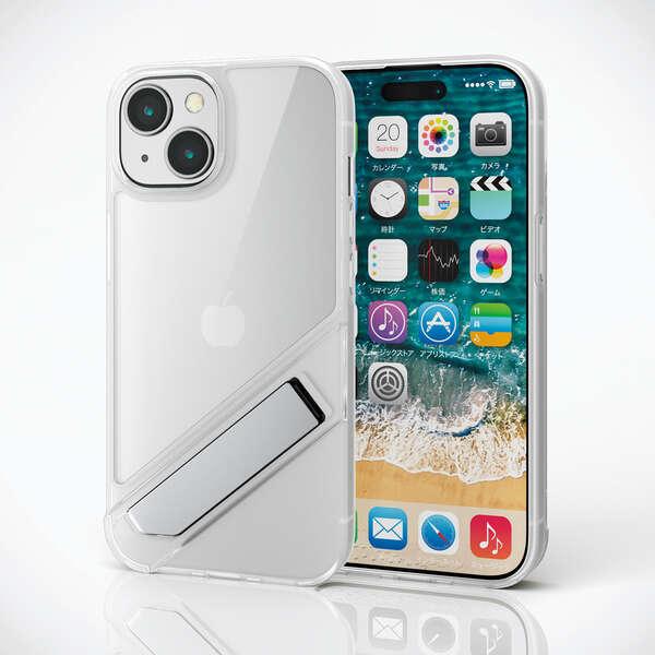 エレコム iPhone 15用 ハイブリッドケース『PM-A23AHVST1CR』 縦にも横にも置ける!折り畳めるキックスタンド付き クリア ELECOM 送料無料