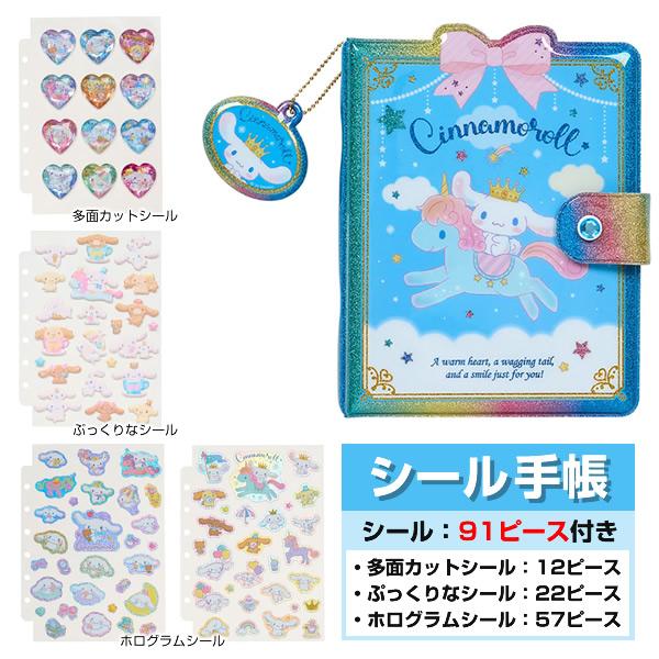 【シール91ピース付き/シール帳】サンリオ ときめくシール&シール手帳 シナモロール 収納 チャーム付き[シナモン/シール台紙/メモ/913928]