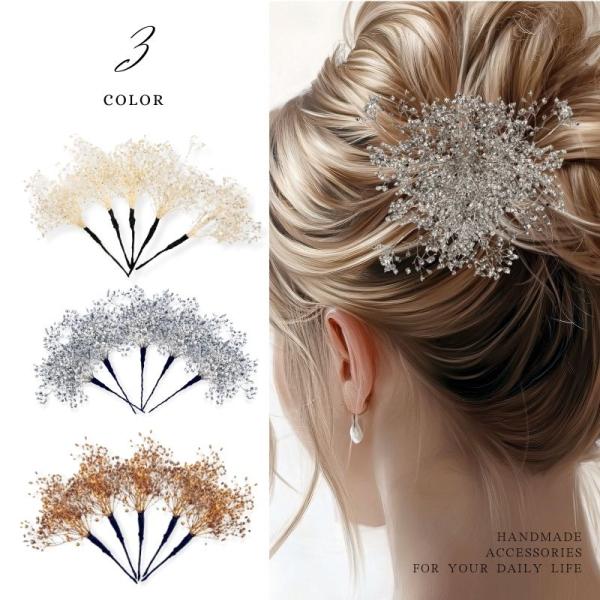 髪飾り 13本セット かすみ草 パール Uピン スティックピン アレンジ 自由 ビーズ ガラスビーズ キラキラ 華やか かわいい おしゃれ ヘアアクセサリー ヘアアクセ