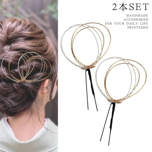 髪飾り 縁ピン2本セット 和装 かんざし 着物 浴衣 祭り 袴 和 軽量 ヘアアクセサリー 法被 入園式 入学式 卒園式 卒業式 成人式 訪問着 シンプル 簡単装着