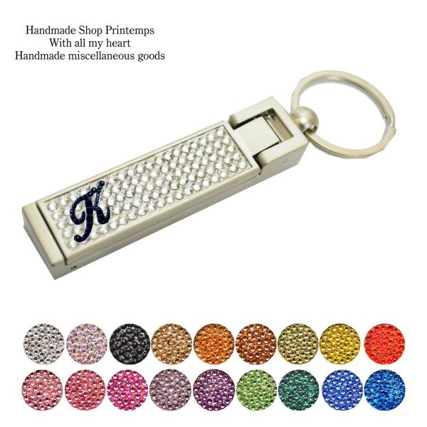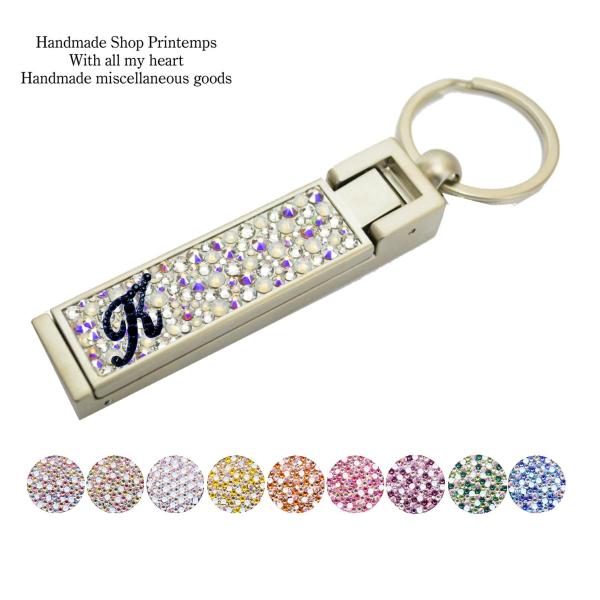 バッグハンガー イニシャル入れ SWAROVSKI カラーベース 2WAY スマホ スタンド キーホルダー バッグチャーム