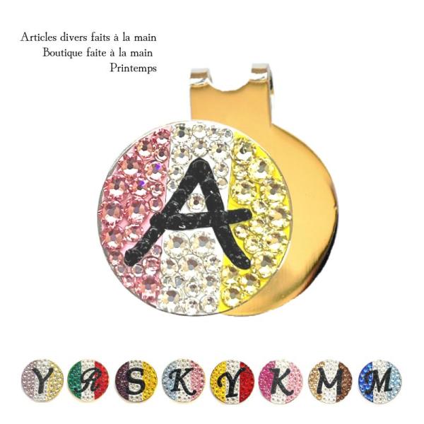 ゴルフマーカー 名入れ スワロフスキー トリコロール カラー クリップ マグネット おしゃれ イニシャル ゴルフ マーカー ホールインワン記念