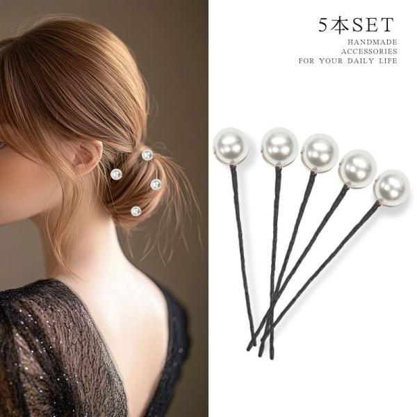 髪飾り パール Uピン 5本セット スティックピン No.184 おしゃれ かわいい 結婚式 ホワイト アレンジ 成人式 和装 発表会 卒業式 入学式
