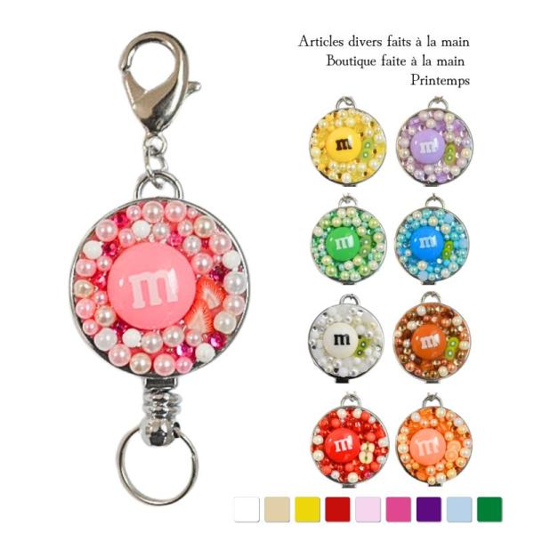 リールキーホルダー mチョコ Lサイズ かわいい おしゃれ リール キーホルダー パスケース リールキー 伸びるキーホルダー
