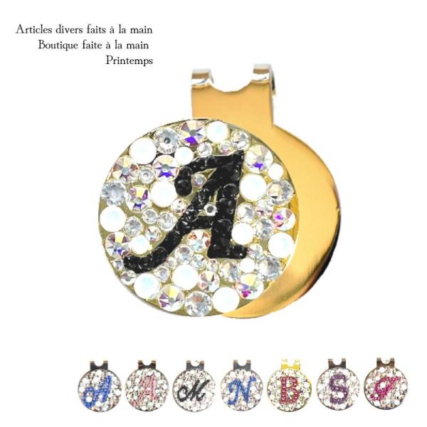ゴルフマーカー イニシャル スワロフスキー ミックスカラーベース クリップ ハットタイプ 名入れ オリジナル ゴルフ マーカー コンペ ホールインワン 記念品