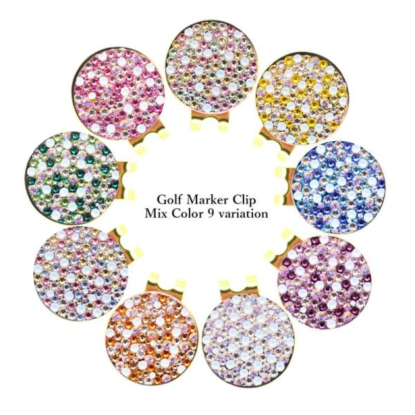 ゴルフマーカー スワロフスキー ミックスカラー クリップ マグネット キャップ ブランド ゴルフ マーカー コンペ ホールインワン 記念品