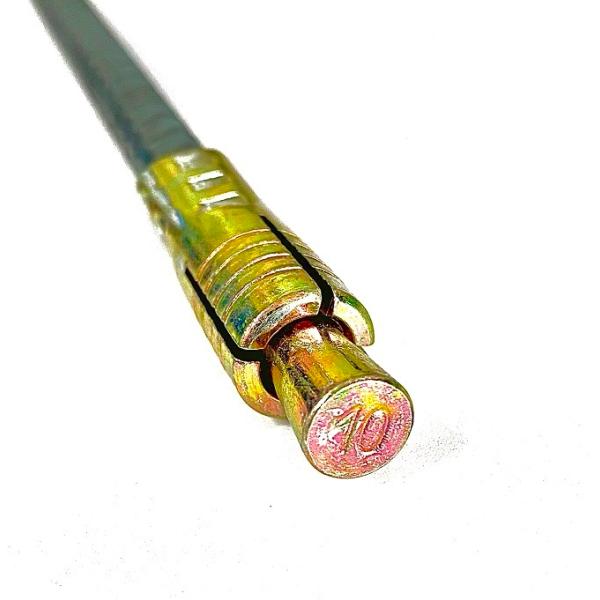 差筋アンカーD10×450mm 1本単位打設済みのコンクリートへ下穴を開け鉄筋を打ち込むことが出来ます。全長:450mm下穴径:14.5mmアンカー部寸法:H40mm×φ14.0mm※メーカーの指定は出来ませんのでご了承ください。