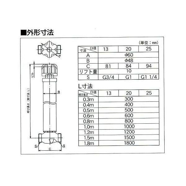 不凍水抜栓 MT-II φ25×0.5m 本体のみ 竹村製作所