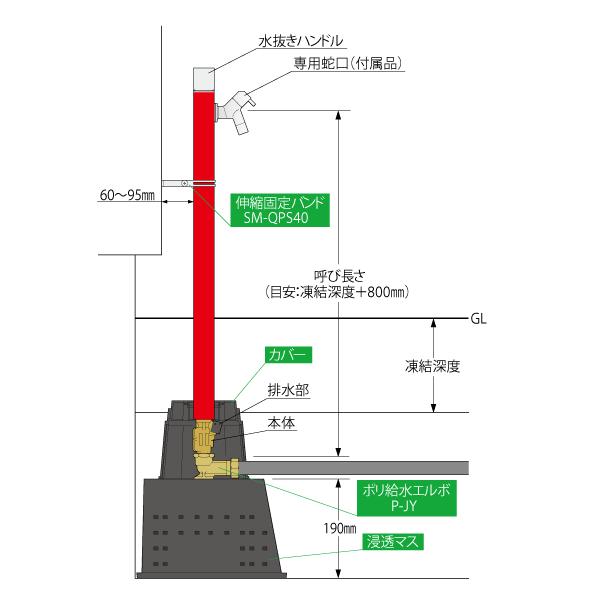 冬の力強い味方、不凍水栓柱アイスルージュD-40KW Φ13×1.0m(日本水道協会認定品)