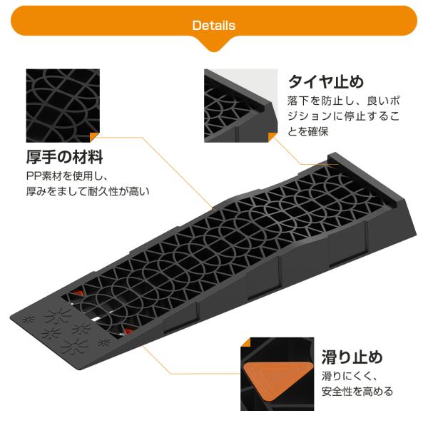 PROBASTO カースロープ 高さ6.5cm 2個セット 耐荷重5トン 幅広200/235mm タイヤ止め オイル交換 メンテナンス 車両整備 ジャッキ タイヤスロープ カーランプ