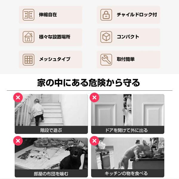 関連キーワード:ベビーゲート ロール式 貼り付け 斜め 水平 140cm ペットゲート ベビーフェンス ペット 赤ちゃん 犬 猫 玄関 階段上 階段 キッチン 寝室 メッシュ 省スペース 段差なし おしゃれ 1年保証