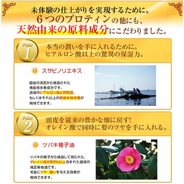 海藻由来成分スサビノリエキスが髪に強力な保護被膜を形成。ヒアルロン酸以上の保湿力でいつまでも潤いを保ち髪の強度をUP!