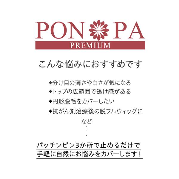 部分ウィッグ 頭頂部 人毛 100% 自然 30cm トップピース 女性 ミディアム つむじ 分け目 総手植え かつら ポンパリミテッド PON-PA Limited