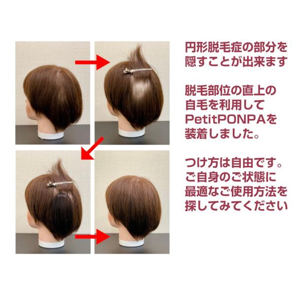 部分 ウィッグ 人毛 100% 自然 医療用 円形脱毛症 隠す ショート 男性 女性 ポイントウィッグ プチポンパ Petit PON-PA ブラック ブラウン