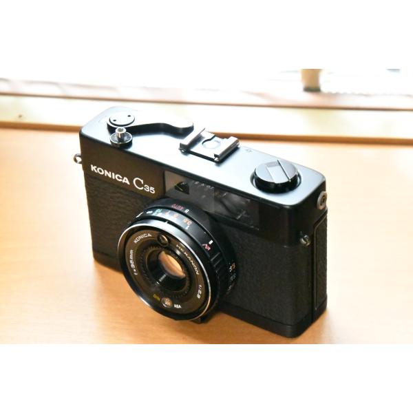 1964年発売「Konica EYE」を目標に小型化。「C」は「Compact」の「C」でコンパクトカメラの名を冠するにふさわしいカメラ。1984年発売「Konica C35 EFP2」まで長い期間、「C35」は引き継がれる。愛称「ジャーニーコニカ」の初代機。