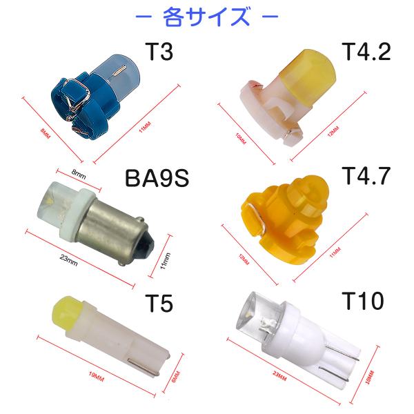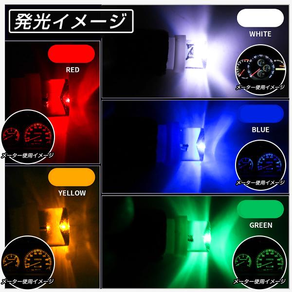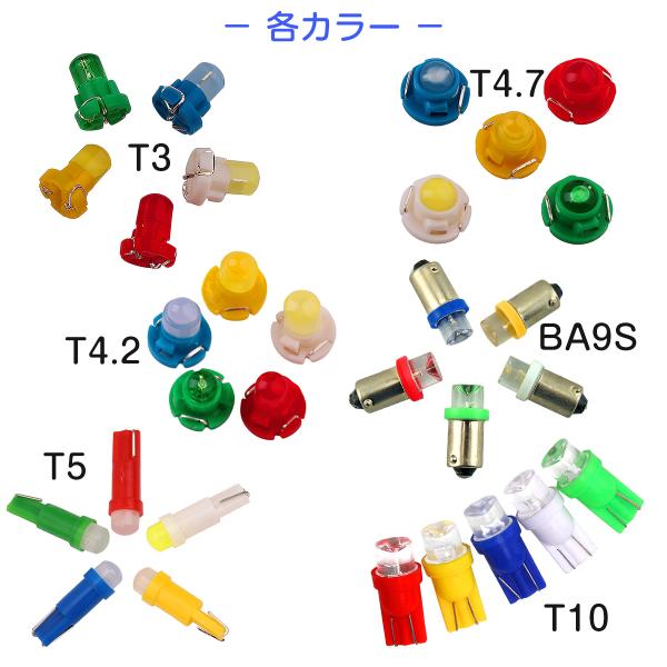 LED T3 T4.2 T4.7 T5 T10 BA9S 5色 メーター球 タコランプ インジケーター エアコンパネル ホワイト・ブルー・レッド・イエロー・グリーン 2個セット 1ヶ月保証