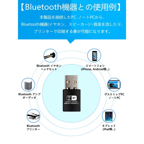 usb wifi Bluetooth アダプター 子機 親機 無線lan Wi-Fiレシーバー デュアルバンド 2.4GHz 150Mbps/5GHz 433Mbps対応 ブルートゥース 5.0 Windows対応 1ヶ月保証