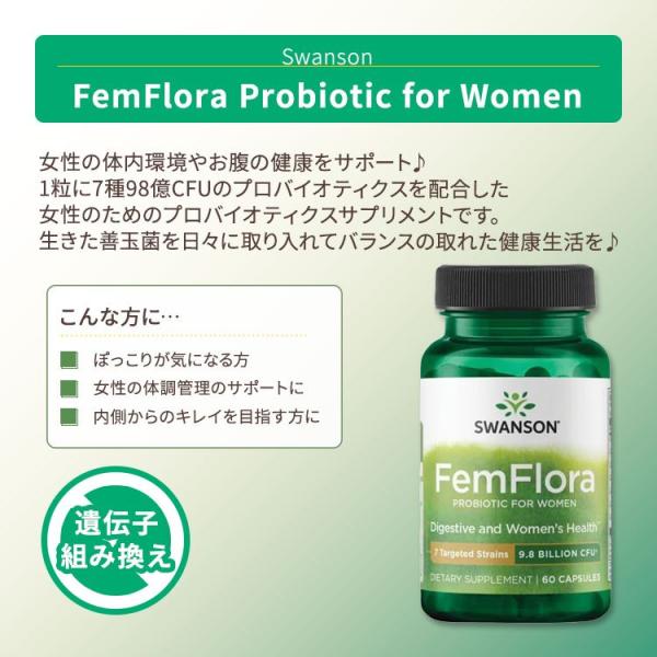 スワンソン フェムフローラ 女性のためのプロバイオティクス カプセル 60粒 Swanson FemFlora Probiotic for Women 乳酸菌 ビフィズス菌 善玉菌