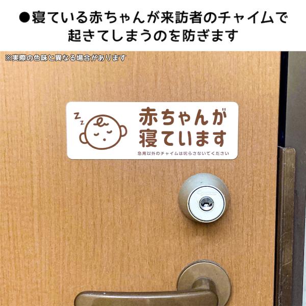 インターホン・ドアホンの近くや玄関扉に貼って、寝ている赤ちゃんが来訪者のチャイムで起きてしまうのを防ぎます。