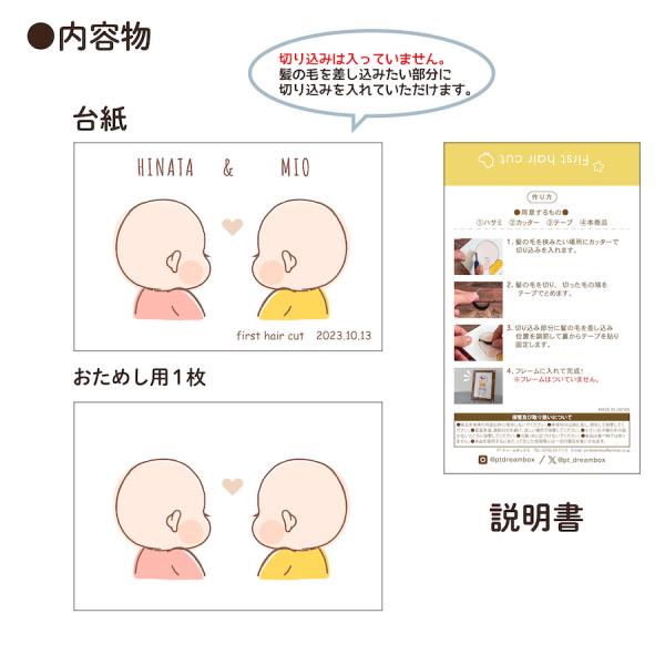 ファーストカット 1枚 名入れ 日付 赤ちゃん 双子 ファーストヘアカット 台紙 髪の毛 胎毛 産毛 胎毛アート 産毛アート ファーストカットアート fhc2-1