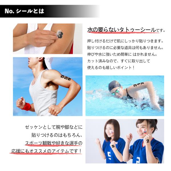 ゼッケンとして腕等に貼りつけるのはもちろん、スポーツ観戦・イベント等、好きな選手の応援にもオススメです。