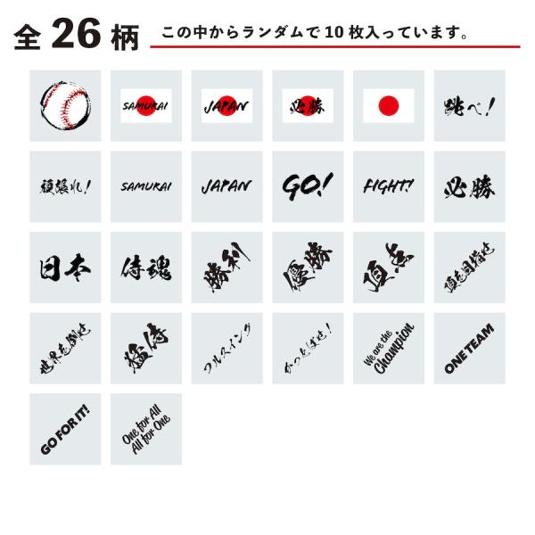 野球応援セット WBC 小サイズ ランダム 10枚入り マスクシール 水無しで貼れる タトゥーシール 顔に貼るシール フェイスペイント スポーツ 顔 日本代表