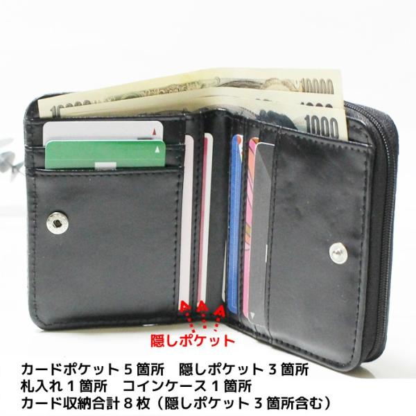 カード最大収納枚数は、隠しポケット部分含む合計8枚