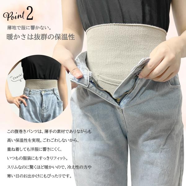 寒い冬におすすめの腹巻きパンツ。ごわごわしない薄手のデザインで、スリムなのにしっかり暖かく、毎日履きたくなる心地よさが特徴です。
