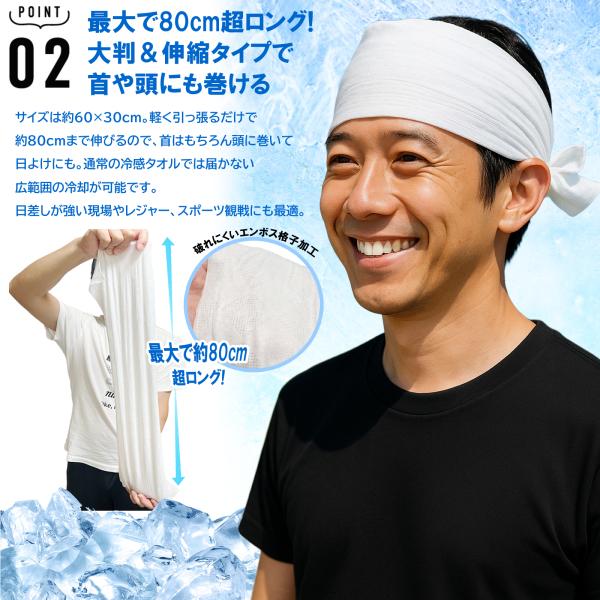 冷タオル ロング 超大判サイズ 7本入 冷感シート 冷えタオル 冷却 クール 熱中症 暑さ対策 ひんやり 個梱包 無香料 首 頭に巻ける 60cm(最大80cm)×30cm