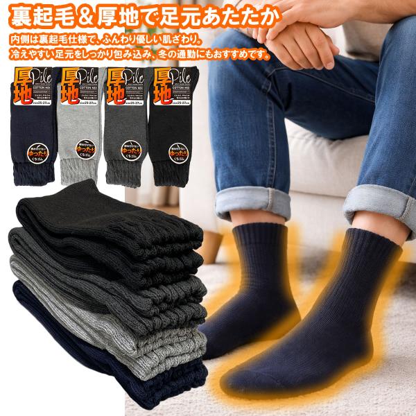 秋冬用 メンズ 靴下 裏起毛 パイル 暖かい 厚地 ビジネス対応