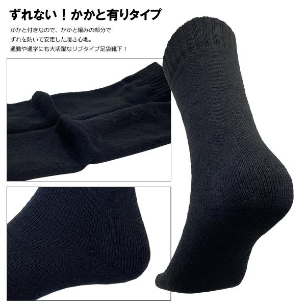 2足組 送料無料 秋冬 25-27cm パイル 足袋 ソックス メンズ 黒 ビジネス クルー丈 紳士靴下 通勤 通学 無地 男性 締め付けない 暖かい 足元あったか