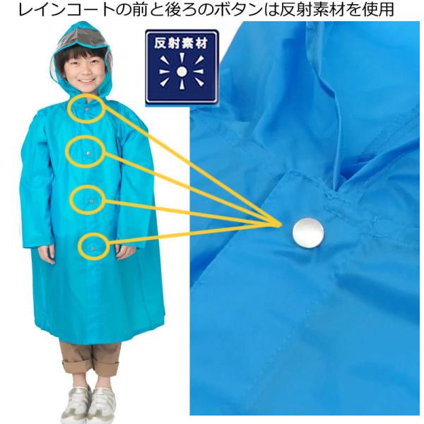 在庫限りセール 送料無料 120cm 140cm キッズ レインコート ランドセル対応 ボタンは反射 撥水 小学生 かっぱ 雨具 通学 遠足 アウトドア レインコート 収納袋付