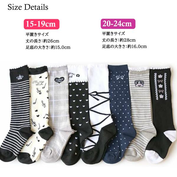 送料無料 15-19cm 20-24cm ハイソックス キッズ 女の子 シック柄 可愛い靴下 即納 ガールズソックス 女児靴下 小学生 幼稚園 保育園