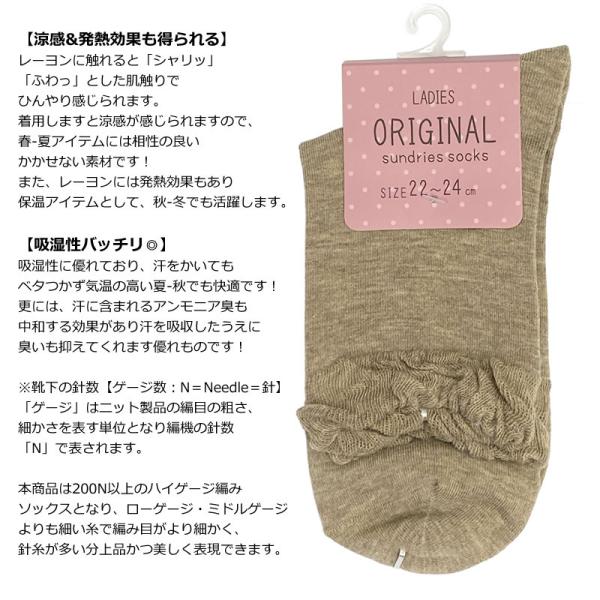 送料無料 クルー丈ソックス レディース 靴下 22-24cm レーヨン混 ハイゲージ編み 婦人ソックス 涼感&発熱効果も得られる 吸湿性抜群 やわらかな肌さわり
